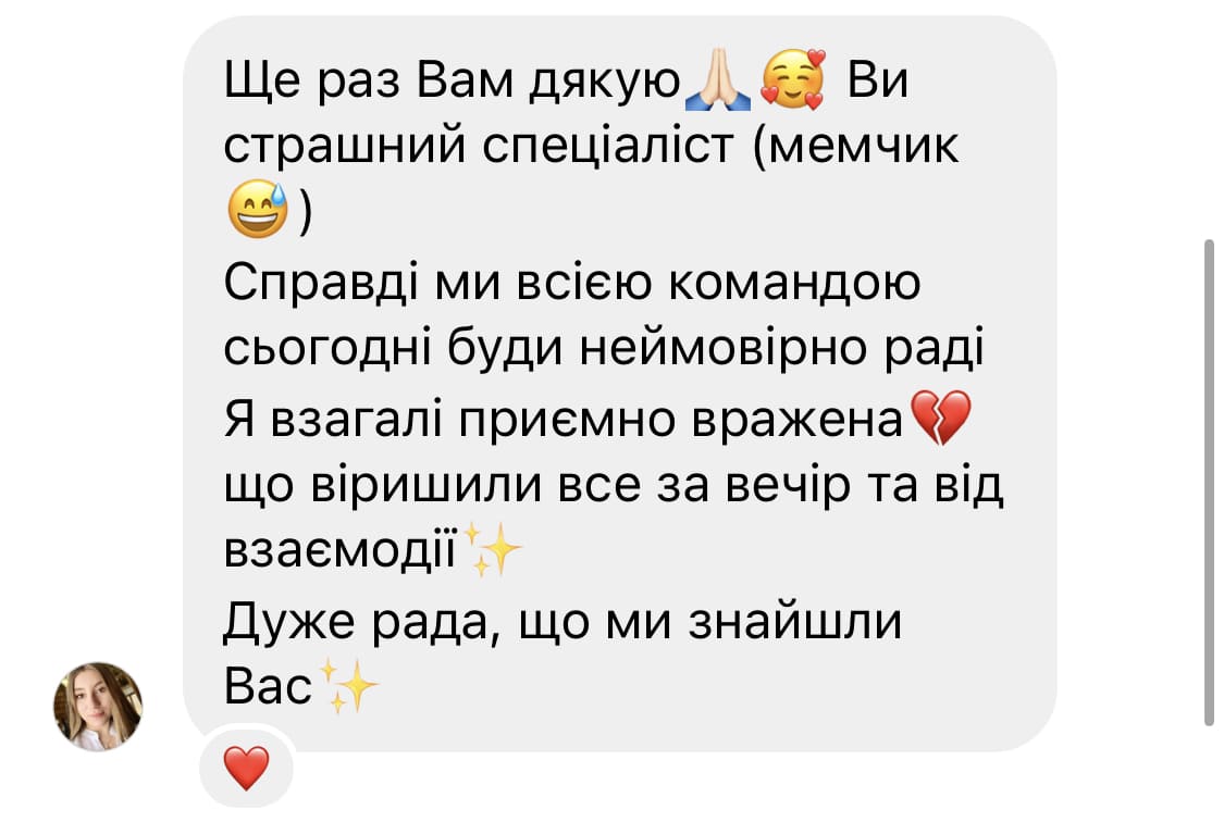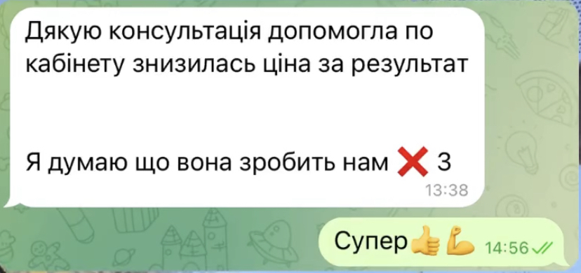 Наша мета - забезпечити нашим клієнтам максимально можливий результат відповідно до їхнього бюджету. У будь-якому випадку ми на 100% впевнені, що ви отримаєте позитивний результат, тому не хвилюйтеся! У разі незадовільних результатів ми надамо вам хорошу знижку на наступний робочий місяць.