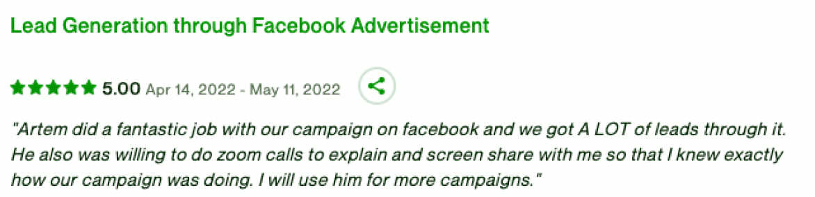 Ні. Ми не можемо показати результати рекламної діяльності та іншу інформацію, адже маємо NDA з клієнтами